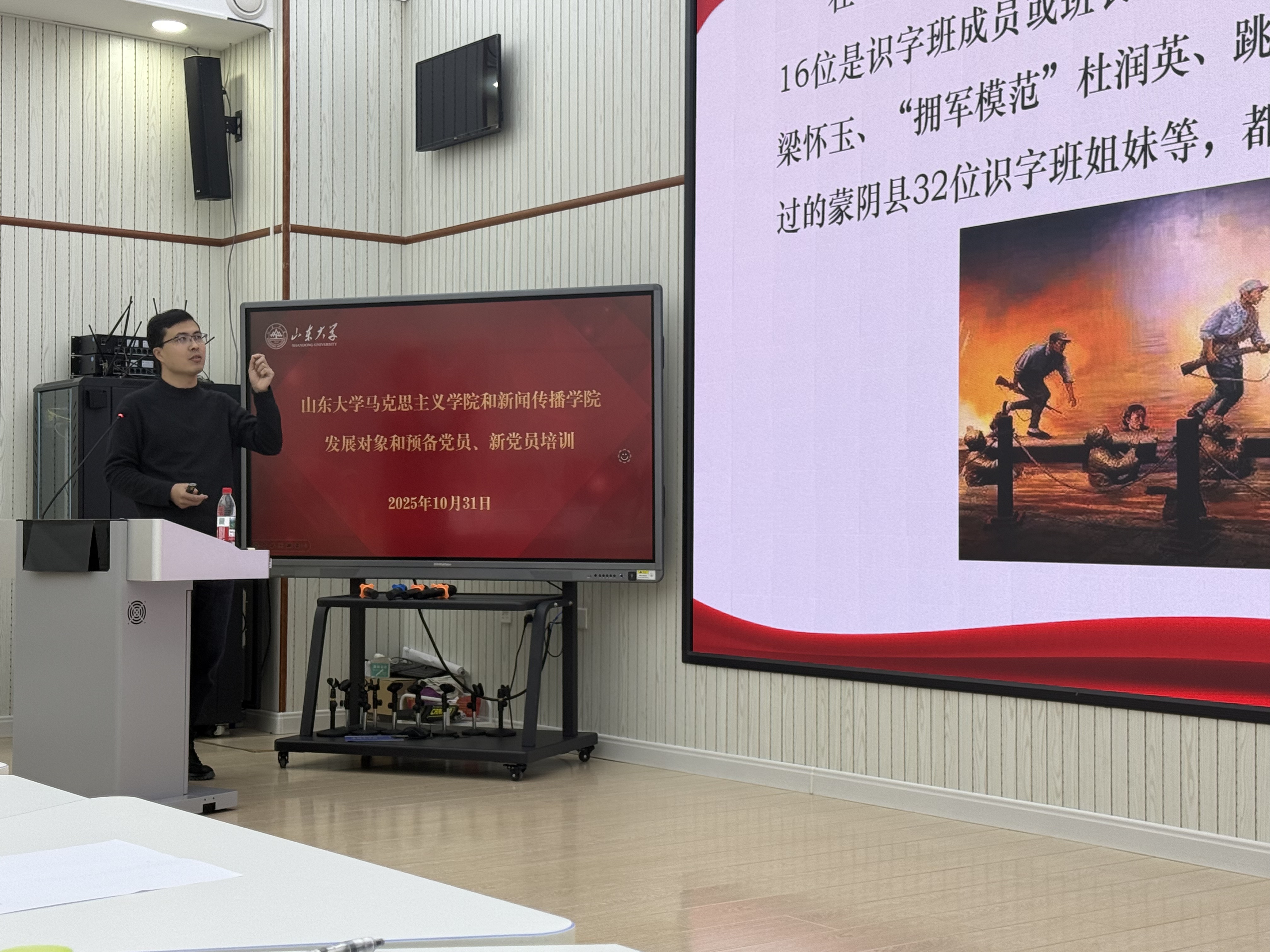 10月31日晚,马克思主义学院与新闻传播学院在生命南楼231报告厅联合举行2025年秋季学期发展对象集中培训。马克思主义学院杜恩义老师围绕“中国共产党人的初心和使命”进行专题授课。