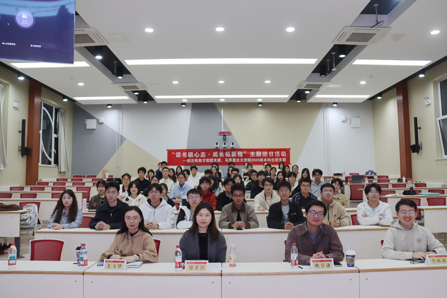 青春逐梦正当时,思想领航谱新篇。10月11日,第九期成仿吾英才班团支部与马克思主义学院2024级本科生团支部联合开展“读书砺心志·成长拓新程”经典阅读主题团日活动。校团委负责教师、班主任、青年教师代表、辅导员、优秀学生代表与两班团员齐聚一堂,以书为媒话成长,以志为帆谈担当,将青年思考与时代感悟深度融合,在书香浸润中筑牢精神根基,在互动研讨中激发奋进活力。