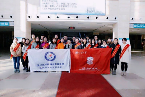 1月29日到31日,山东大学成仿吾英才班青年宣讲团到达滨州医学院烟台附属医院进行寒假第二场宣讲活动。为了贴近医院实际、知行合一,宣讲团成员们在30日和31日上午进行了导医协助志愿服务,并于31日中午在医院报告厅成功举办了主题为“十九大,有点潮”的宣讲会,宣讲会由滨州医学院烟台附属医院团委书记黄瑾出席,医院五十余位青年医生参加。