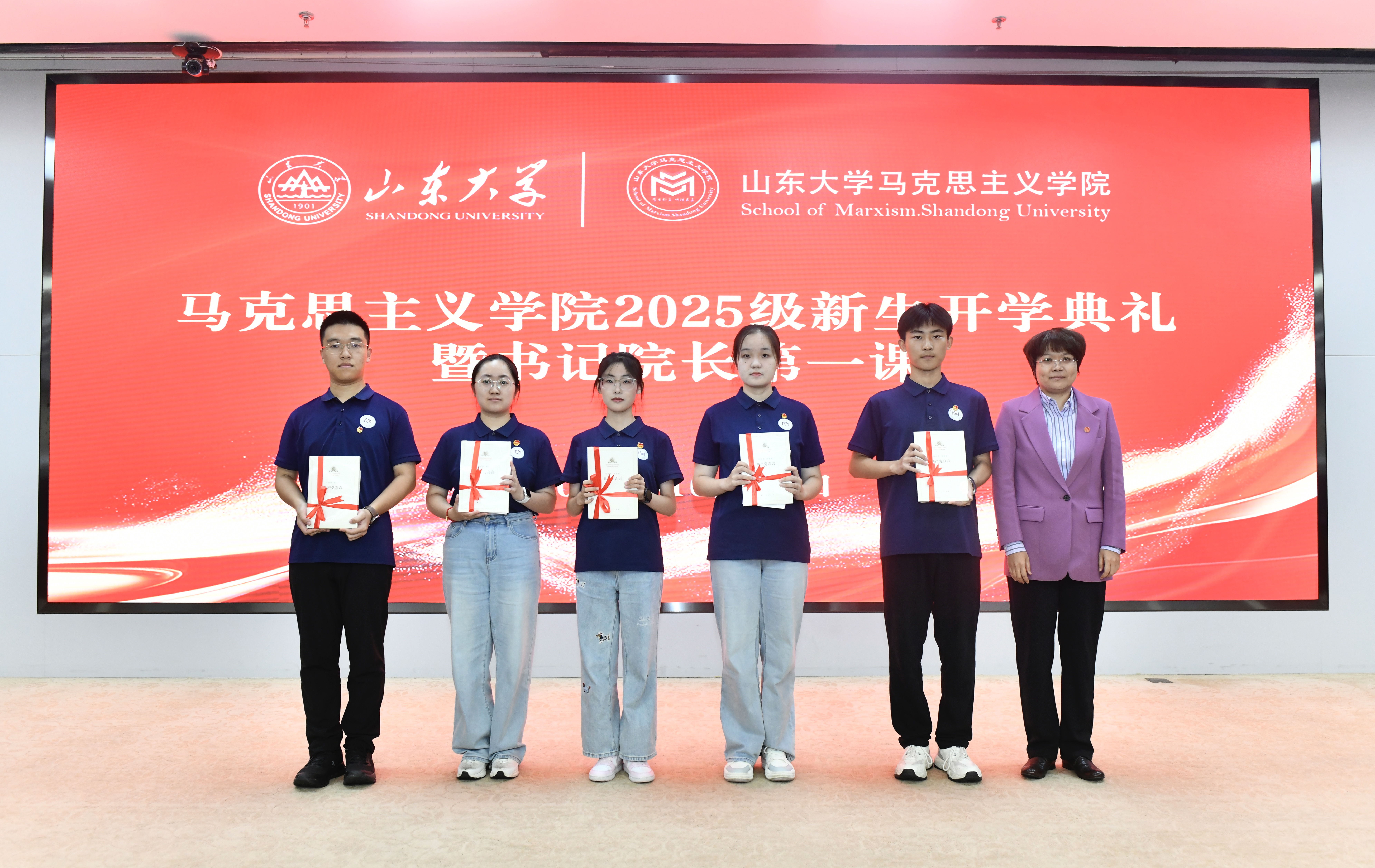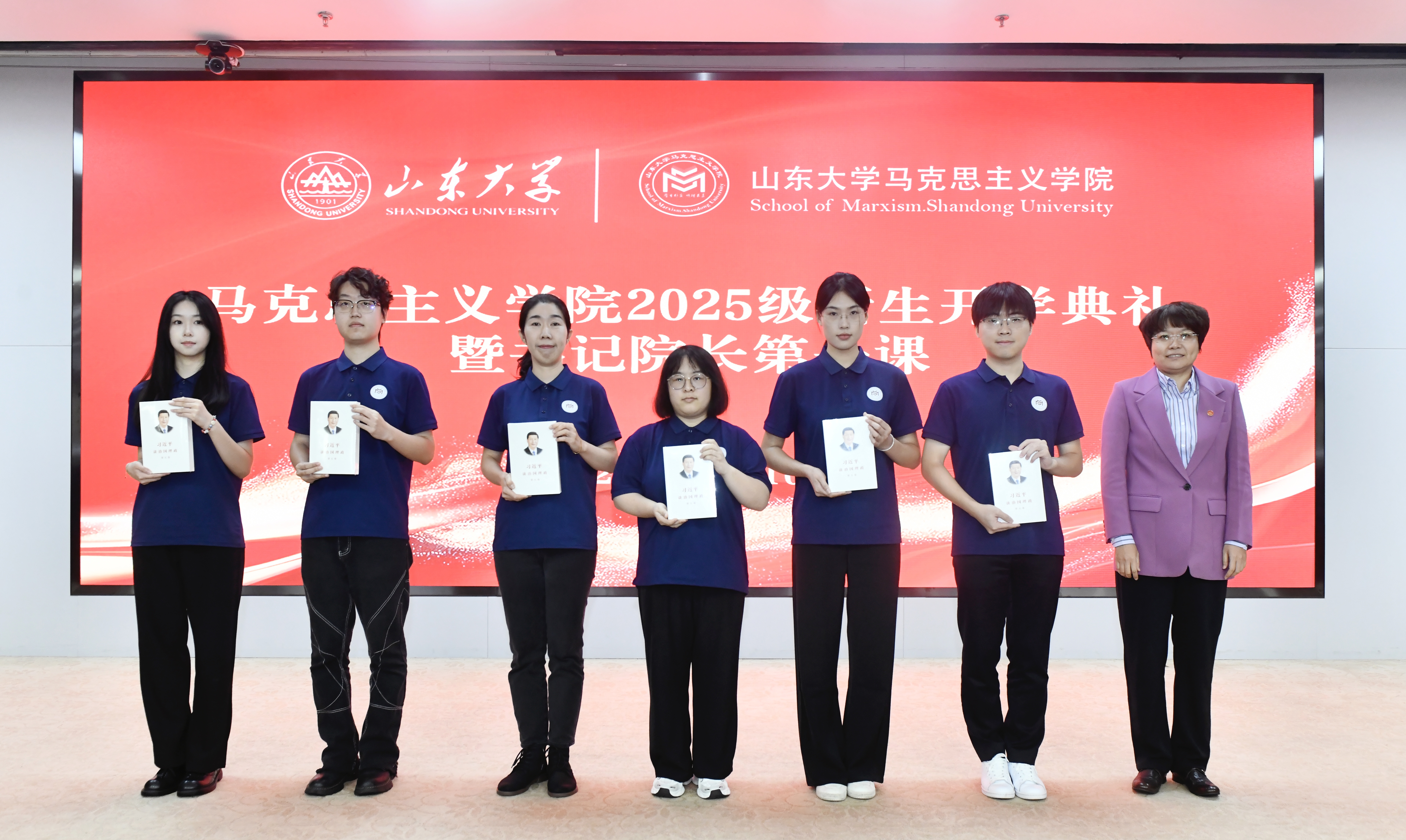 典礼伊始,学院党委书记鞠晗向新生代表赠送《习近平谈治国理政》第五卷和《共产党宣言》《当青春遇见马克思》《马克思的朋友圈》等著作,希望同学们通过系统阅读,夯实理论根基、筑牢信仰之基,在学术道路上坚定方向、勤思深悟,把读原著、学原文、悟原理作为基本功,努力成长为具有扎实理论素养和坚定理想信念的新时代青年。