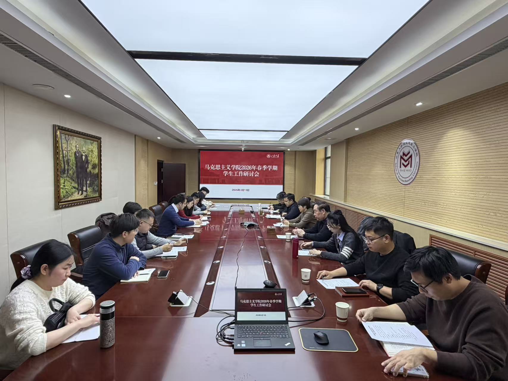 3月13日,马克思主义学院召开2026年春季学期学生工作研讨会,就落实“健康第一”教育理念,促进学生健康成长,全面提升学生工作质量与育人实效进行深入研讨交流。学院党委书记鞠晗、副院长马明冲出席会议,党委副书记王海宁主持会议。