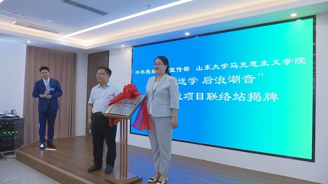近日,山东大学马克思主义学院与中共德城区委宣传部联合开展“硕博送学·后浪潮音”宣讲活动,并举行合作备忘录签约暨揭牌仪式。此次校地联动旨在将高校的理论优势与基层的实践活力有机结合,共同推动党的创新理论的青年阐释扎根结果。山东大学马克思主义学院、德州市、德城区相关负责人出席此次活动,山东大学“习近平新时代中国特色社会主义思想青年学习会”骨干、“硕博送学”宣讲团代表、“习习会”党支部部分成员参加活动。
