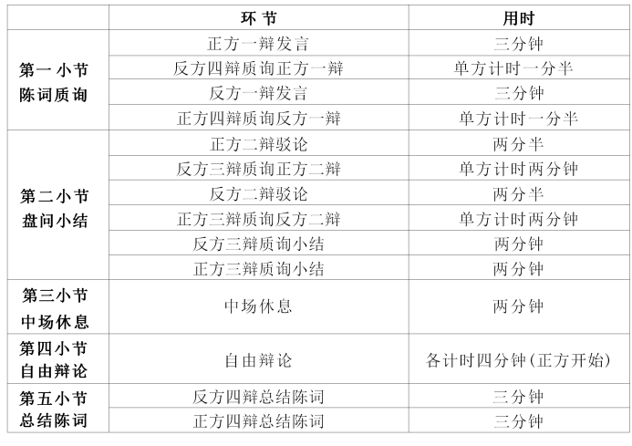 本次辩论赛遵循山大杯赛制,环环相扣,具体环节流程如图。