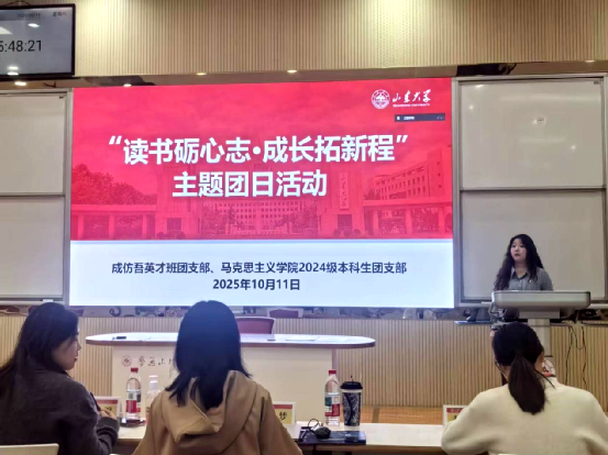 青春逐梦正当时,思想领航谱新篇。10月11日,第九期成仿吾英才班团支部与马克思主义学院2024级本科生团支部联合开展“读书砺心志·成长拓新程”经典阅读主题团日活动。校团委负责教师、班主任、青年教师代表、辅导员、优秀学生代表与两班团员齐聚一堂,以书为媒话成长,以志为帆谈担当,将青年思考与时代感悟深度融合,在书香浸润中筑牢精神根基,在互动研讨中激发奋进活力。