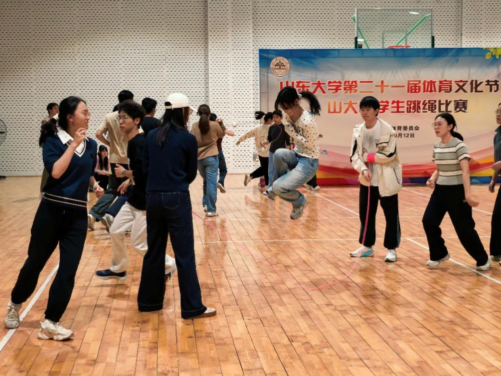 为积极响应国家体育强国建设号召,传承弘扬中华体育精神,推动民俗民间传统体育项目繁荣发展,充分展现我校青年学生顽强拼搏、团结协作、积极进取的精神风貌,山东大学于10月12日举办第二十一届体育文化节之“山大杯”学生跳绳比赛。在本次跳绳比赛中,马院积极组队参赛,共派出20位同学登场竞技,以绳为媒、以赛会友,展现学院学子的活力风采。