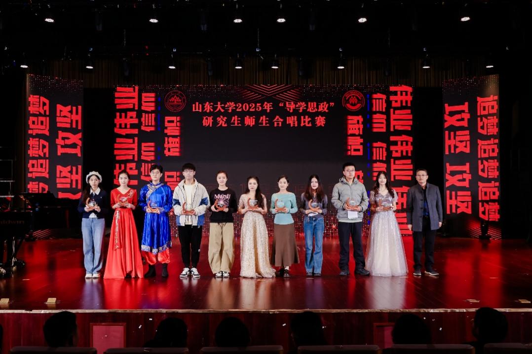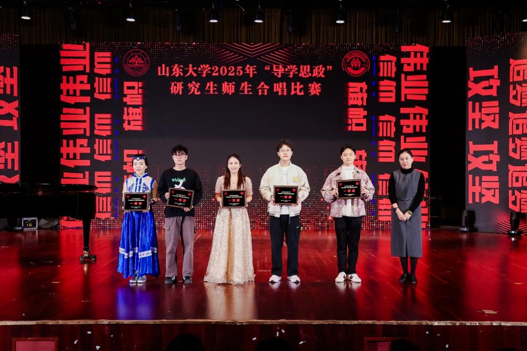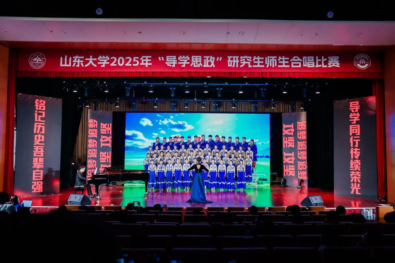 10月26日,山东大学2025年“导学思政”研究生师生合唱比赛在中心校区音乐厅举行。马克思主义学院“弦歌青马”研究生师生合唱团在本次比赛中再创佳绩,荣获一等奖(第一名)与导学思政奖,取得历史性突破。
