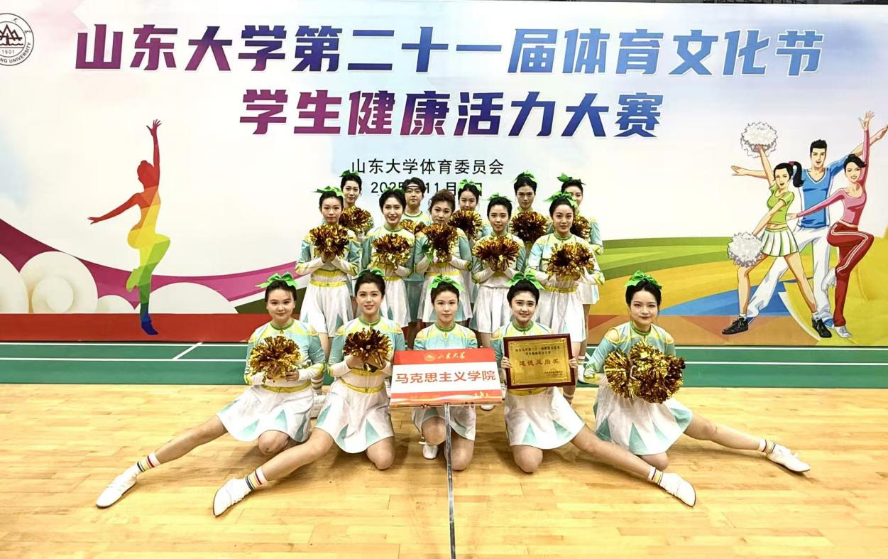 动感节拍点燃赛场激情,活力舞姿诠释青春力量。11月2日,由山东大学体育委员会主办的山东大学第二十一届体育文化节之学生健康活力大赛于中心校区体育馆圆满落幕,马克思主义学院代表队在花球啦啦操项目中获得道德风尚奖,王精锐、刘思缘在双人舞蹈啦啦操项目中获评“健康活力之星”。