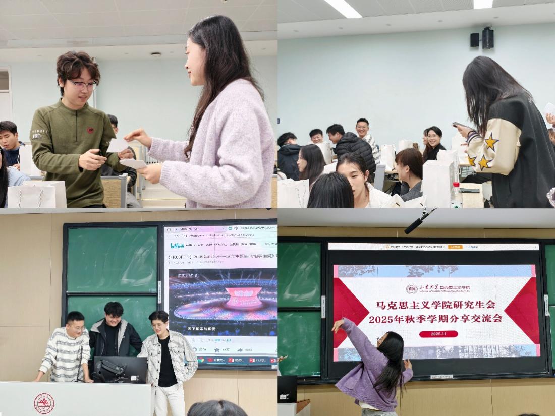 研途同行凝共识,聚力奋进谱新篇。为进一步落实学联学生会组织改革相关要求,帮助新进成员尽快了解和适应研究生会相关工作,统筹谋划第十九届研究生会秋季学期工作发展任务,11月5日,马克思主义学院研究生会举办2025年秋季学期分享交流会,学院研究生会指导老师张广汇、第十九届研究生会全体成员参加活动。