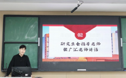 随后,学院研究生会指导老师张广汇讲话。他首先结合党的二十届四中全会精神的学习贯彻,进一步强调广大同学要坚定理想信念、聚焦学习主业。在讲话中,他对新成员的加入表示热烈欢迎,对全体成员的辛勤付出表示感谢,同时结合自身从事学生工作的经历,勉励大家要保持积极的工作态度与服务热情,坚守服务同学的初心,在各项工作任务的实践磨砺中脚踏实地、增长才干。