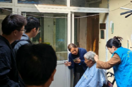 在社区工作人员引导下,同学们分组前往三户老人家中,其中既有子女长期在外的空巢老人,也有为社区发展奉献多年的老党员。大家与老人促膝长谈,聆听他们的人生阅历与社区变迁故事,细致询问身体健康与日常生活需求,随后拿起扫帚、抹布等工具,认真清扫房间、擦拭门窗、整理杂物,社区工作人员还现场为老人修剪头发,用实际行动改善老人居住环境。