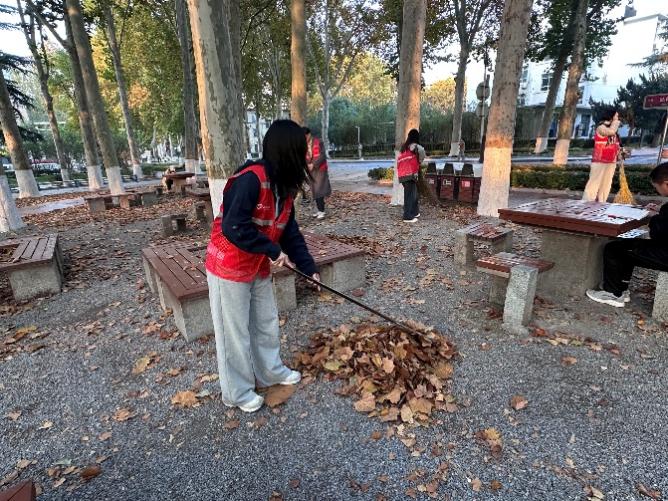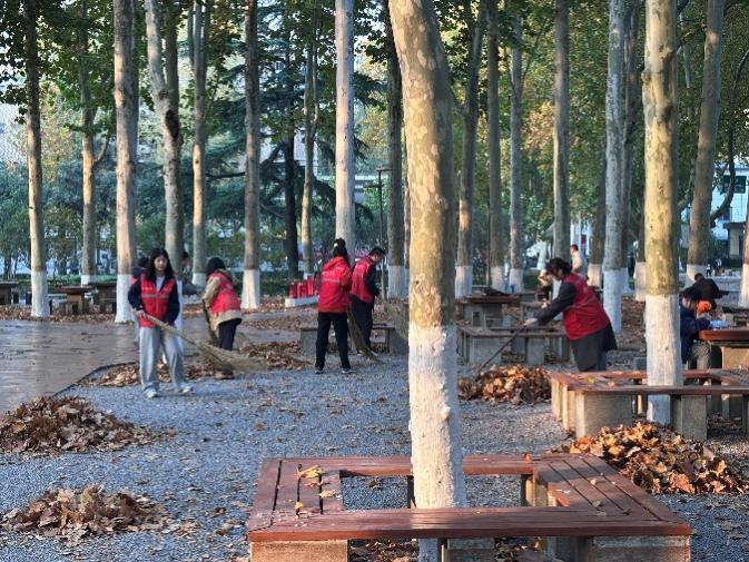 校园清扫活动则将劳动场景聚焦身边,践行绿色发展理念。秋日的校园小树林落叶堆积,既影响环境整洁,也存在安全隐患。同学们手持清扫工具,分工协作清理落叶、捡拾杂物,大家弯腰俯身、默契配合,将散落的枯枝败叶集中收集、分类处理,有的同学还主动检查绿化带中的隐藏垃圾,不放过任何卫生死角。经过数小时的辛勤劳作,小树林恢复了整洁有序的面貌,为师生营造了舒适优美的校园环境。此次活动不仅践行了“劳动创造美好生活”的理念,更让同学们在集体劳动中体会到协作的力量,深化了校园主人翁意识,将环保理念转化为随手可为的劳动行动。
