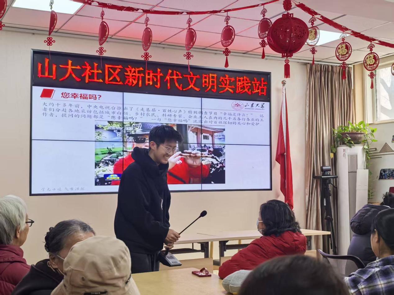 为深入学习贯彻党的二十届四中全会精神,推动党的创新理论向基层延伸拓展,12月19日,学院2024级本科生团支部组织青年学生宣讲团,先后走进山大社区与区直西社区,面向社区工作人员和退休老党员干部开展专题宣讲志愿服务。