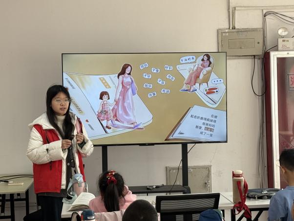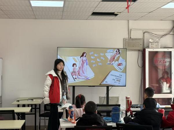 当日上午,支教队员王文茁以“古人起名趣事”为主题,用轻松幽默的方式帮助孩子们了解古人的起名趣闻。课堂以“重耳真的耳朵大?”这一问题引入,瞬间点燃了孩子们的好奇心。随后,支教队员从郭女王、邓猛女等颇具特色的古代人名谈起,讲述名字背后的时代背景与人物故事,孩子们也在欢声笑语中了解古人取名的用意与趣闻。此外,课堂上设置了“古代女孩名字有多特别”“名字能改变命运吗”等讨论环节,孩子们认真思考、踊跃发言,现场的互动交流让看似枯燥的历史知识变得鲜活有趣。