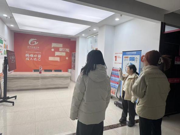 2月4日,实践团队前往历下区社会工作服务总站开展参观活动,详细了解其在罕见病患者社会帮扶、资源链接、社区融入等方面的工作举措与实践经验,进一步拓宽了调研视野,为完善罕见病关怀协同体系补充了基层实践素材。
