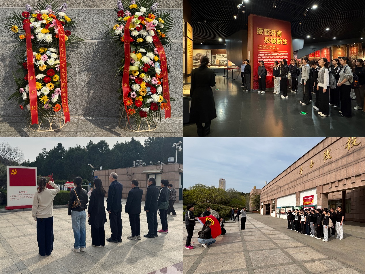 2026年3月29日,山东大学马克思主义学院研究生思政课教研室党支部联合第九期成仿吾英才班团支部赴济南革命烈士陵园(济南战役纪念馆)举办“传承红色基因 赓续精神血脉”主题党日活动。通过实地探访、现场教学、仪式教育等方式,师生共同缅怀革命先烈,重温峥嵘岁月,汲取奋进力量,树立和践行正确政绩观。