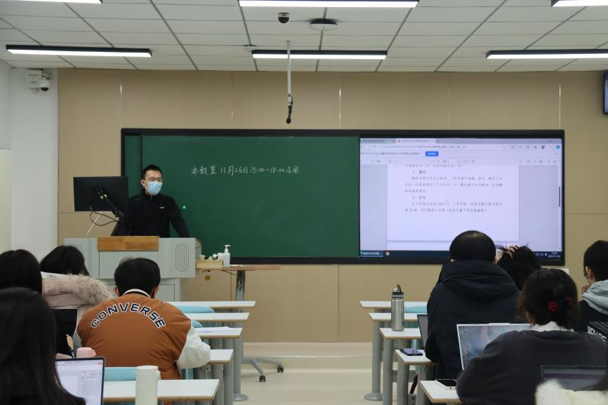学生会负责人李政首先从学生会工作实际出发,提出学习新闻宣传技能、做好宣传工作的重要意义,并为同学们介绍文字稿件写作的基本格式要求,希望同学们在撰写新闻稿时养成严谨规范的写作习惯。他从新闻稿的构成要素、写作顺序和写作要点等角度开展详细介绍,结合具体写作案例,分享新闻稿的标题、导语、正文和结尾的写作经验及注意事项,提醒同学们在写作过程中做到规范化表达、紧密贴合主题、注意写作话题的普遍性与特殊性等内容。