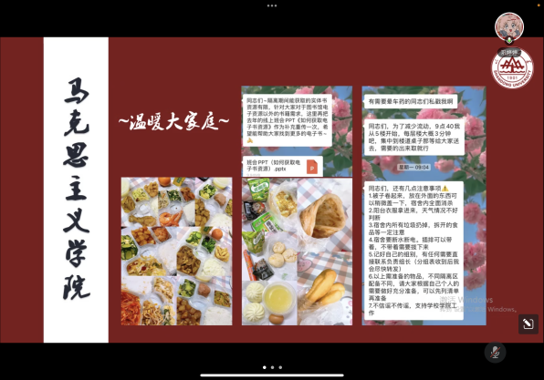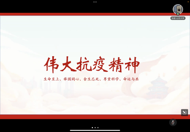 在交流环节,大家从学校的强大动员、工作人员的辛勤付出、隔离点的物资保障等角度分享自隔离转运以来的所见所闻、所思所想。刘星星从学校的有利组织、临淄的给力援助和学生的积极配合出发分享了隔离生活以来的感悟体会;巩婷婷回顾了转运隔离以来学校、学院和临淄隔离点给予的全方位的关怀关心,表达了“病毒无情,人间有爱”的美好祝愿;邢思源分享了方舱隔离的生活点滴和温暖瞬间,表明自己在未来会更主动发挥党员的先锋模范作用,为疫情防控贡献自己的力量。李建禄表达了学校在短短36小时内完成了13000余名师生转运的震撼,感恩所有工作人员的默默坚守与付出,他坚信杨柳依依之时,定会载归济上,续写山大荣光。韩记康分享了自己的“抗压”小妙招,他指出可以通过学习、追剧、听音乐等方式,让自己“忙”起来,化解负面情绪,保持积极向上的心态。张寒青向同学们推荐了健身操和针对性训练并讲解了健身前有关注意事项,鼓励大家隔离期间选择舒缓运动。