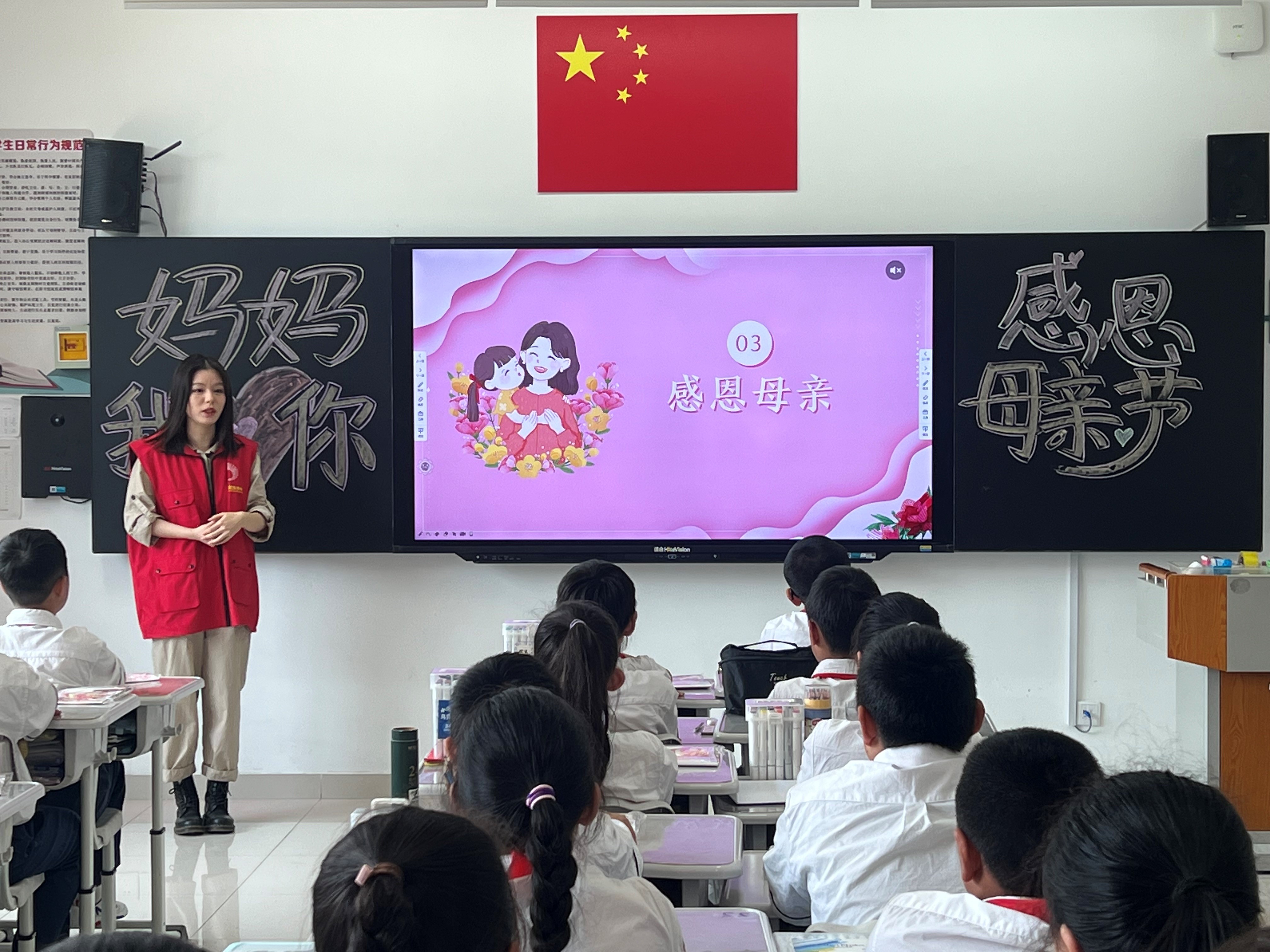 活动伊始,支部成员赵柔萱以《感恩母亲节》为题向济南市市中区润泽学校四年级的小学生们进行了课程讲授,介绍了母亲节的由来、各个国家母亲节的习俗,分享了送妈妈一束花、送妈妈一张贺卡、写封信给妈妈等向母亲表达感谢的方式,学生们积极踊跃地进行了互动,并一起演唱了《烛光里的妈妈》。授课现场气氛活跃,学生们的参与度高,教学效果反馈极佳。这堂精彩生动的课程让学生们更为深刻地体悟到了母亲的艰辛与付出,弘扬了孝敬父母的传统美德,增进了亲子感情。