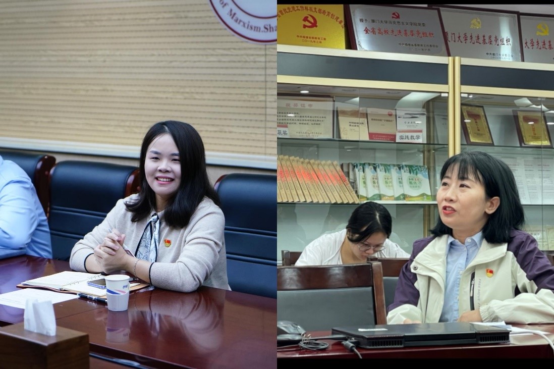 为进一步学习宣传贯彻党的二十大精神,深入领悟习近平新时代中国特色社会主义思想,11月7日上午,山东大学马克思主义学院硕士研究生第二党支部联合厦门大学马克思主义学院2021级硕士研究生党支部以“开辟马克思主义中国化时代化新境界中的学子担当”为主题,开展了党的二十大精神联学共建活动。山东大学马克思主义学院党委副书记王海宁、院长助理董沐夕,厦门大学马克思主义学院党委副书记杨建中、副教授吴茜及两校马克思主义学院党支部党员、入党积极分子等通过线上线下相结合的方式共同参会。本次活动由学院硕士研究生孙魁旭主持。