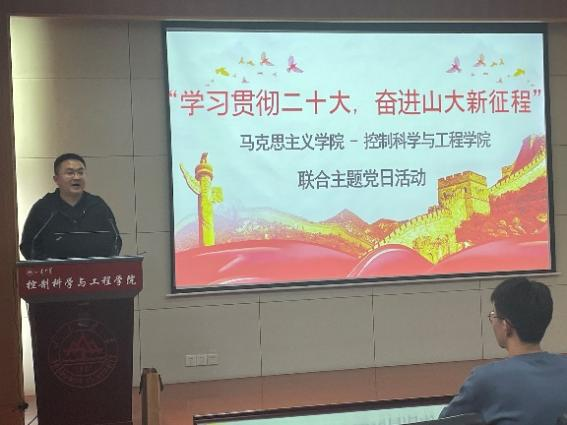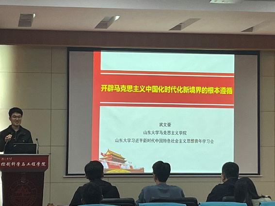 10月26日,马克思主义学院硕士研究生第一党支部与控制科学与工程学院研究生党支部于千佛山校区四号楼302报告厅开展联学共建活动。控制学院党委副书记李文振为本次党日活动致辞,与会人员集体观看学习党的二十大报告视频。马克思主义学院武文豪同志作了题为《开辟马克思主义中国化时代化新境界的根本遵循》的领学分享,并就相关疑问予以解答。
