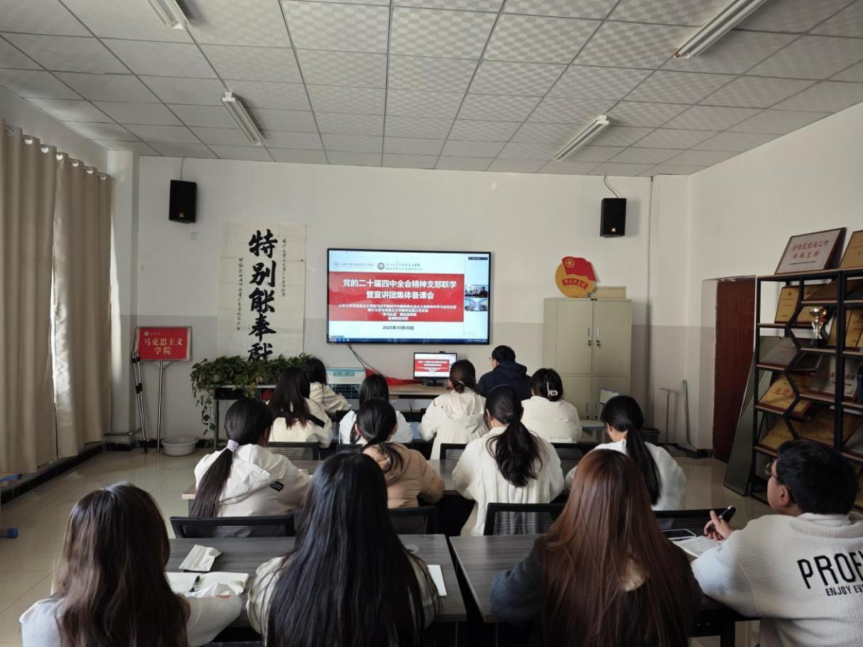 党的二十届四中全会精神支部联学暨宣讲团集体备课会环节,双方支部以及山东大学“青马弘道”理论宣讲团与喀什大学金胡杨宣讲团联合开展集体学习。山东大学马克思主义学院2023级博士生王凯宗以“深学笃行党的二十届四中全会精神:在中国式现代化征程中勇担青春使命”为题进行专题领学。他立足青年学生视角,紧扣“为何要学、学什么、怎么学”三个关键问题,对全会精神的重大意义、核心要义和实践要求进行了深入浅出的解读,为后续双方宣讲团开展精准化、对象化宣讲夯实理论基础。